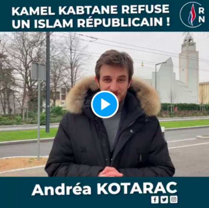 Andréa Koratac membre du parti de Marine Le Pen s’est filmé devant la Grande Mosquée de Lyon pour s’en prendre à Kamel Kabtane, recteur de la mosquée, auprès de ses partisans parce qu’il a « refusé de signer la charte en faveur d’un islam respectueux des principes républicains » selon lui.