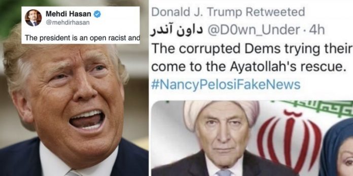 L’activité Twitter du président a été accueillie par de vives critiques. Ilhan Omar a répondu à un tweet du journaliste britannique Mehdi Hasan qui a comparé le retweet de Trump à l’indignation face aux déclarations qu’Omar et Rashida Tlaib ont faites dans le passé.