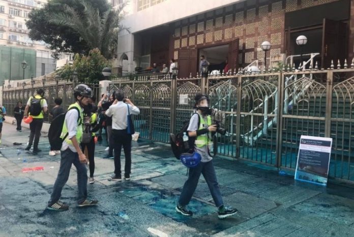 Ce lundi, la police de Hong Kong, s’est officiellement excusé pour avoir aspergé l’entrée d’une mosquée d’« eau bleue », une teinture mélangée à une solution poivrée brûlant la peau, permettant d’identifier les manifestants. Cet incident avait eu lieu pendant une opération de dispersion de manifestants.