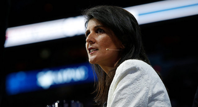 L’ambassadrice des États-Unis auprès de l’Onu, Nikki Haley, prononçait un discours sur la politique étrangère américaine à l’Université de Houston à l’occasion de la fin de l’année universitaire.