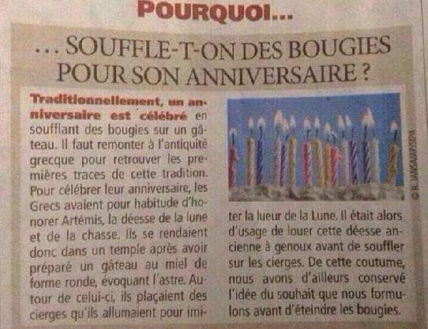 La forme du gâteau évoquait la forme d’un astre et les cierges allumés dessus représentaient la lune. Puis, les Grecs louait la déesse à genoux, ce qui rappelle le souhait formulé avant de souffler les bougies.