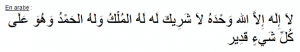 « La Ilaha Illa Allah Wahdahou La Charika Lah Lahoul Moulk Wa Lahoul Hamd Wa Houwa ‘Ala Koulli Chay’in Qadir »