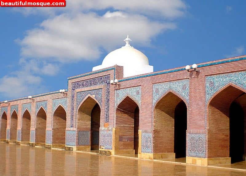 Elle est flanquée de plusieurs minarets, dotée d’un dôme et d’une cour d’entrée.