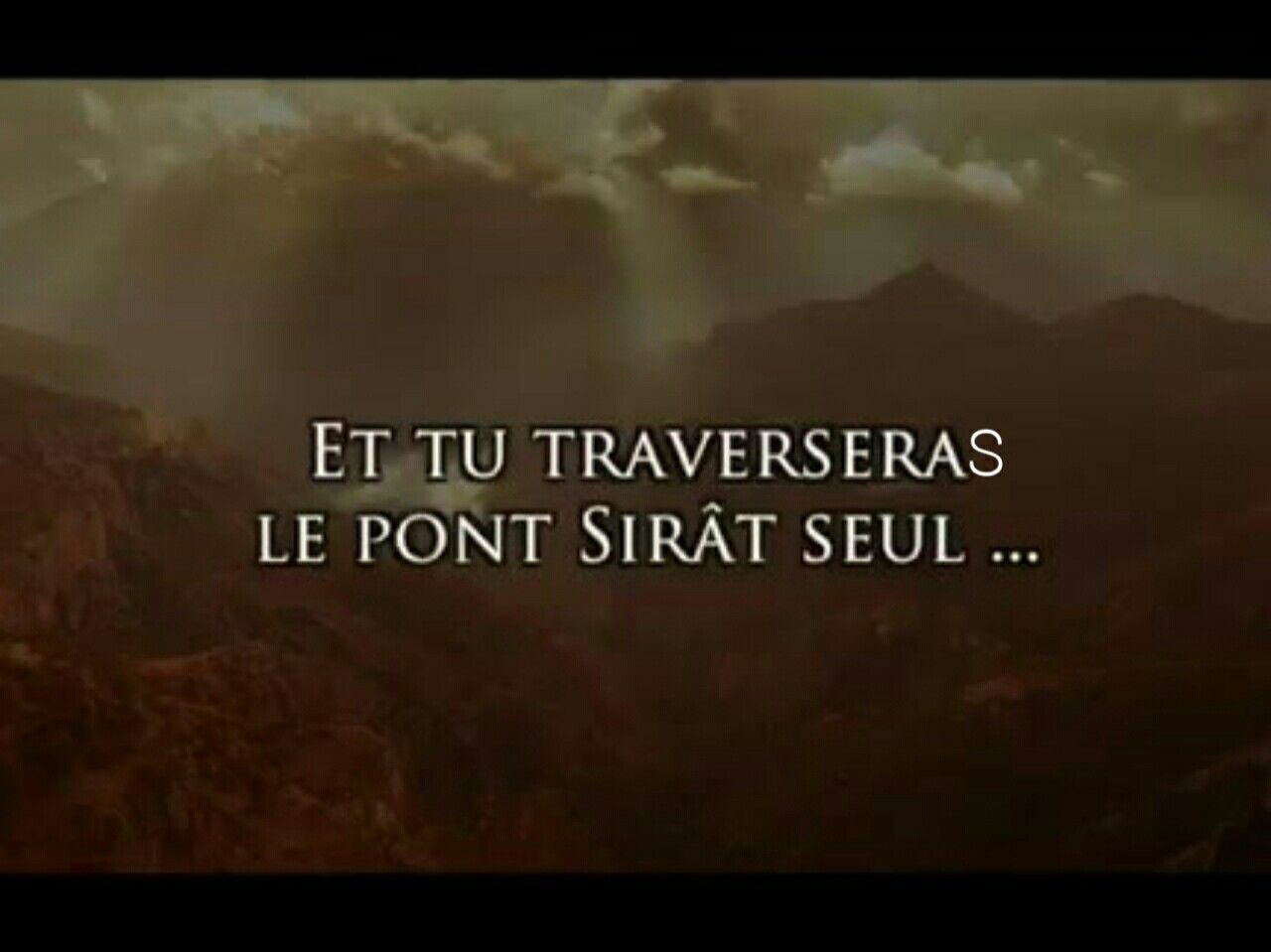 Ce jour là nous risquons de voir des personnes que l’on connait passer sur As-Sirât ! Nous les verrons tomber en hurlant, passer devant en étant plus dévouées que nous mêmes ! Nous serons obligés de passer par ce pont. Il n’y aura que trois monde (paradis, enfer et as-Sirât )