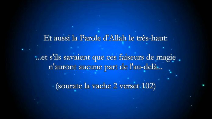 Allah dit : “Et ils suivirent ce que les diables racontent contre le règne de Soulayman. Alors que Soulayman n’a jamais été mécréant mais bien les diables ; ils enseignent aux gens la magie (sihr) ainsi que ce qui est descendu aux deux anges Harout et Marout, à Babylone ; mais ceux-ci n’enseignaient rien à personne, qu’ils n’aient dit d’abord : « Nous ne sommes qu’une tentation : ne soit pas mécréant ; ils apprennent auprès d’eux ce qui sème la désunion entre l’homme et son épouse. Or, ils ne sont capables de nuire à personne qu’avec la permission d’Allah. (…)” (Sourate 2 Verset 102)