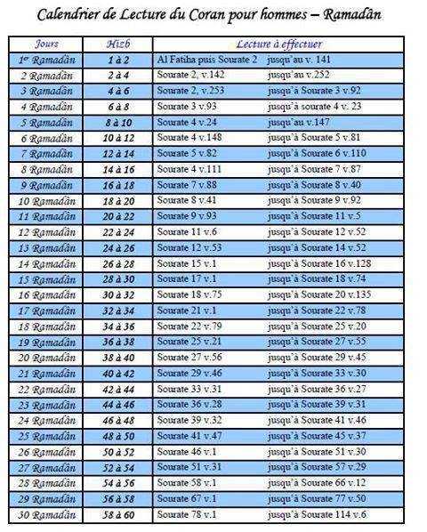 Le Ramadan est l’occasion de lire le Saint Coran en entier pendant toute la période du mois béni. Voici un planning de lecture (pour hommes et pour femmes) pour vous faciliter les tâches et vous guider dans votre démarche.