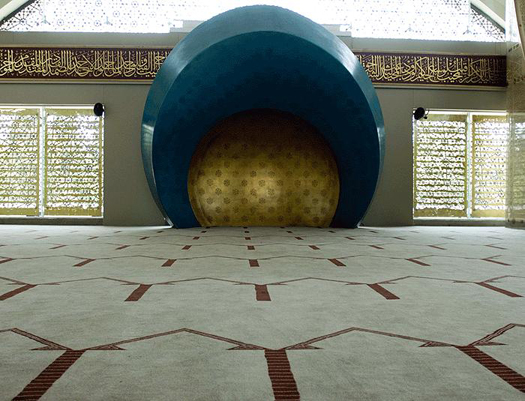 Cette mosquée possède des lignes épurées et un style moderne. L’extérieur se voit entreposer une coupole qui renvoie les rayons du soleil grâce aux feuilles d’aluminium qui la recouvrent. Une fois à l’intérieur, la lumière se fait intense puisqu’elle pénètre par d’immenses baies vitrées. Le centre de la pièce est occupé par un énorme lustre en forme de spirale construit par des gouttes de cristal formant une écriture arabe très ancienne : le coufique. D’une façon générale, les formes sont rondes et généreuses, rappelant le monde dans lequel on vit.