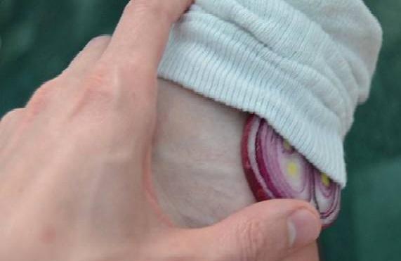 La nuit, il vous suffit de couper un oignon en tranches épaisses, les placer sur la plante des pieds et de porter des chaussettes par-dessus afin de les faire tenir.