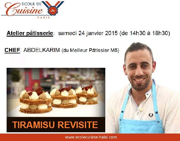 Chose désirée, chose réalisée; l’école de cuisine Halal vous propose de participer à un atelier pâtisserie avec Abdelkarim, ce samedi 24 janvier 2015 à 14h30 sur la thématique du tiramisu revisité !