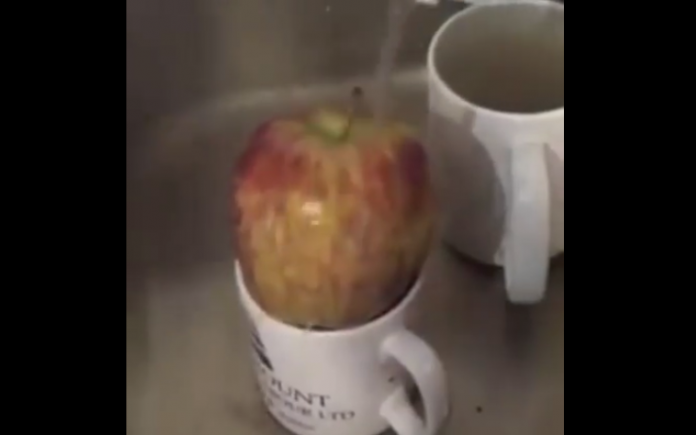 Qui n’a pas salivé à la vue de belles pommes d’un rouge brillant ? Une petite expérience menée par deux hommes donne toute la dimension de l’arnaque. Une pomme bien brillante est passée sous de l’eau chaude et très vite une pellicule enrobant le fruit fond sous l’effet de la chaleur. Il s’agit d’une fine pellicule de cire toxique, contenant parfois de la “Morpholine” une substance non recommandée par l’OMS (l’Organisation mondiale de la Santé).