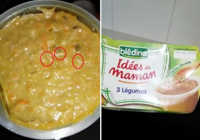 Dans cette vidéo publiée par un père de famille indigné par son immonde trouvaille, on y voit un plat de la marque Blédina à base de “légumes”… accompagnés de “délicieux” vers gigotant dans tous les sens !
