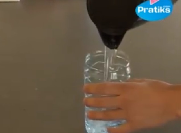 -Retirez le bouchon et placez le dessus de la bouteille renversée sur le fond de la bouteille