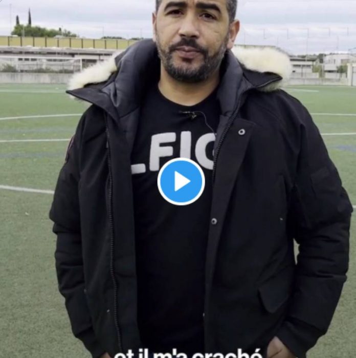 « L’entraîneur, il l’a mal pris et il a pété les plombs. Il a commencé à s’énerver, à m’insulter. Il a dit que j’étais qu’un arbitre arabe de merde. Et de là, avant que je sorte, eh bien je vois tous les jeunes, ils m’attendent à la sortie des vestiaires. »