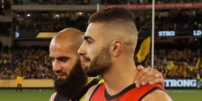 Bachar Houli, des Richmond Tigers, et Adam Saad, des Essendon Tigers, étaient dans les bras l’un de l’autre sous les yeux des 76 424 spectateurs du Melbourne Cricket Ground, le plus grand stade de l’hémisphère Sud. Un geste magnifique qui servira à dénoncer l’islamophobie bien trop présente en Australie.