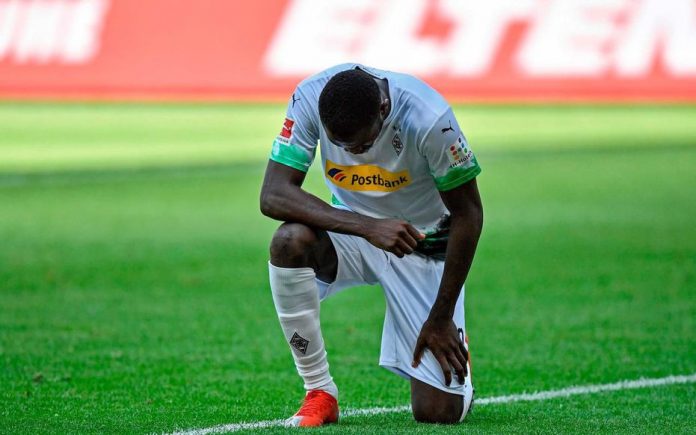 L’attaquant français, fils de Lilian Thuram, a profité de marquer un but lors d’un match du championnat allemand dimanche pour célébrer la mémoire de l’homme noir mort alors qu’il était aux mains de la police, à Minneapolis le 25 mai.