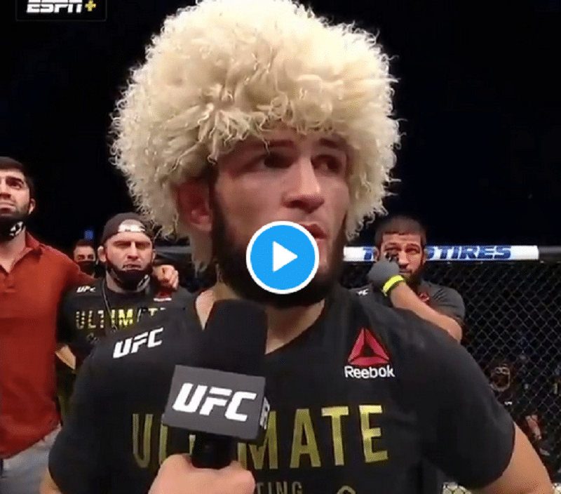 « Al Hamdoulilah » a dit Khabib Nurmagomedov au micro du journaliste. Il a ensuite expliqué que ces dernières semaines avaient été difficiles pour lui au niveau mental, surtout depuis la mort de son père avec qui il entretenait une relation fusionnelle.