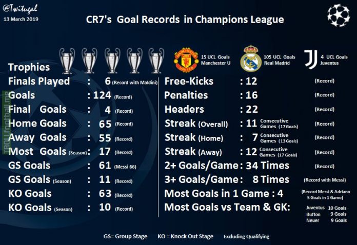 Cristiano Ronaldo a empoché cinq Champions League dans sa carrière et vise un 6ème trophée avec son nouveau club, la Juventus (4 trophées avec le Real Madrid et un avec Manchester United). Auquel cas il égalera le record de l’ancienne légende du Réal, Paco Gento.