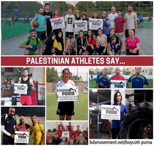 « Augmentons la pression pour convaincre Puma de faire le saut et de mettre fin à leur sponsoring avec israël pour soutenir les droits des palestiniens »