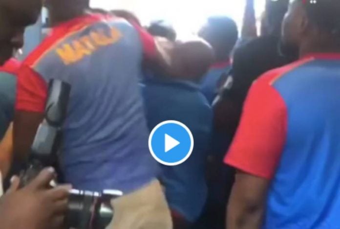 Le président de la République démocratique du Congo, Félix Tshisekedi Tshilombo, a tenu à rendre une visite surprise aux Lions de l’Atlas, dans les vestiaires du stade des Martyrs, après le nul face aux Léopards (1-1). Problème, la sécurité qui ne l’a pas reconnu l’a maladroitement expulsé des vestiaires…
