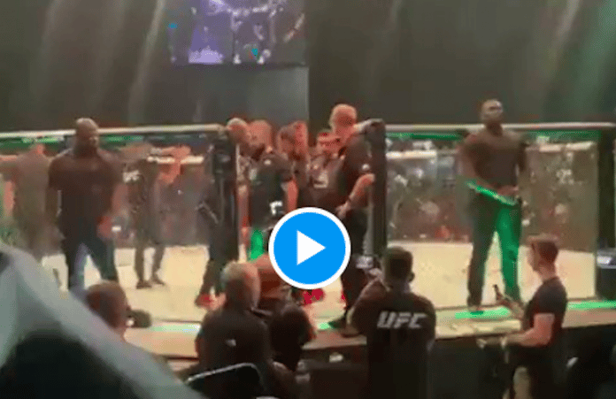 Une vidéo de l’ancien champion du monde de l’UFC Khabib Nurmagomedov prenant un drapeau palestinien de la foule à Abu Dhabi et le remettant au combattant qu’il entraîne, Belal Muhammad, qui est américain avec des parents palestiniens.