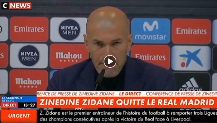 Seulement cinq jours après avoir remporté sa troisième finale de Ligue des champions d’affilée avec le Real Madrid, Zinédine Zidane annonce son départ du club espagnol.