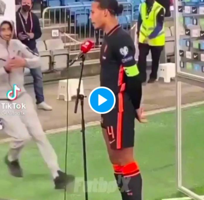 Un fan a interrompu l’interview d’après-match de Van Dijk pour lui demander une photo, mais le défenseur central de Liverpool, visiblement frustré, a écarté l’individu, qui a approché le Néerlandais.