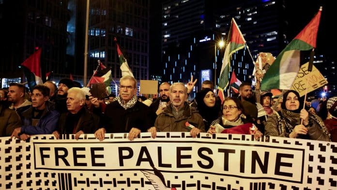 Le manifestant juif anti-sioniste Udi Raz a confronté la police allemande alors qu’elle réprimait des manifestants pro-palestiniens lors d’une marche pour la Journée internationale des droits des femmes dans la capitale, Berlin, hier. « Vous êtes ici pour terroriser des personnes qui ne font rien d’autre que montrer leur solidarité avec nos frères et sœurs soumis à un génocide », a-t-il déclaré aux agents. La police allemande a violemment dispersé la marche, frappant, traînant et arrêtant des manifestants.