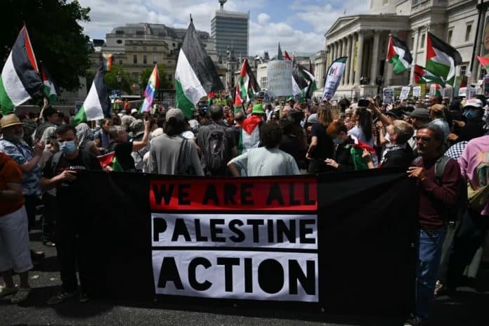 Des centaines de personnes se sont réunies sur la place Trafalgar, en plein centre de Londres, pour exprimer leur soutien à ce groupe d’action directe pro-palestinien, alors que des informations indiquent qu’il pourrait être ajouté à la liste des organisations terroristes.